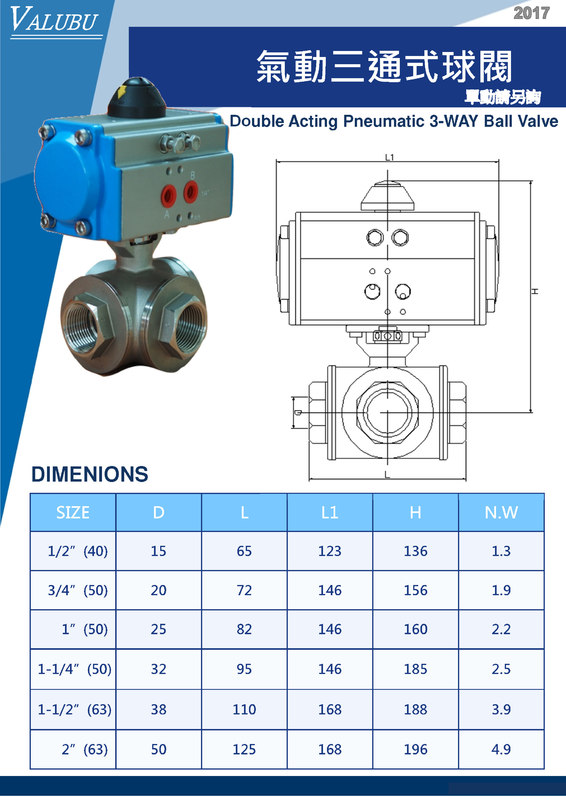 鋁氣缸三通球閥
