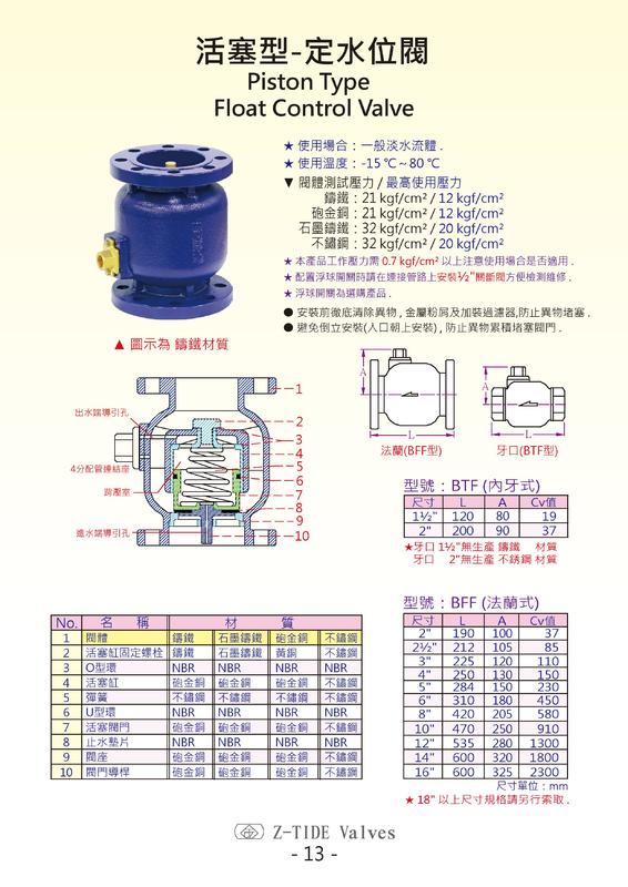 活塞式定水位閥