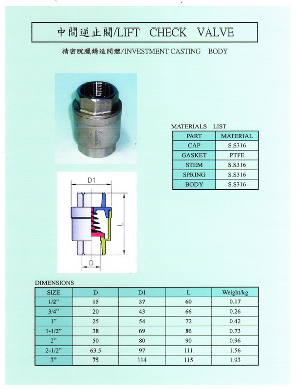 不銹鋼中間逆止閥